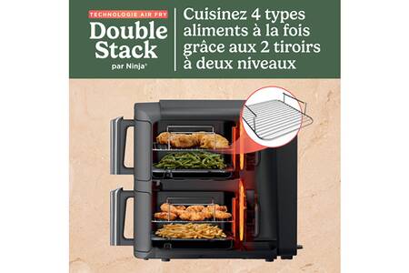 - 2 x plaques de cuisson Air Fry ; 2 x grilles de cuisson superposables
