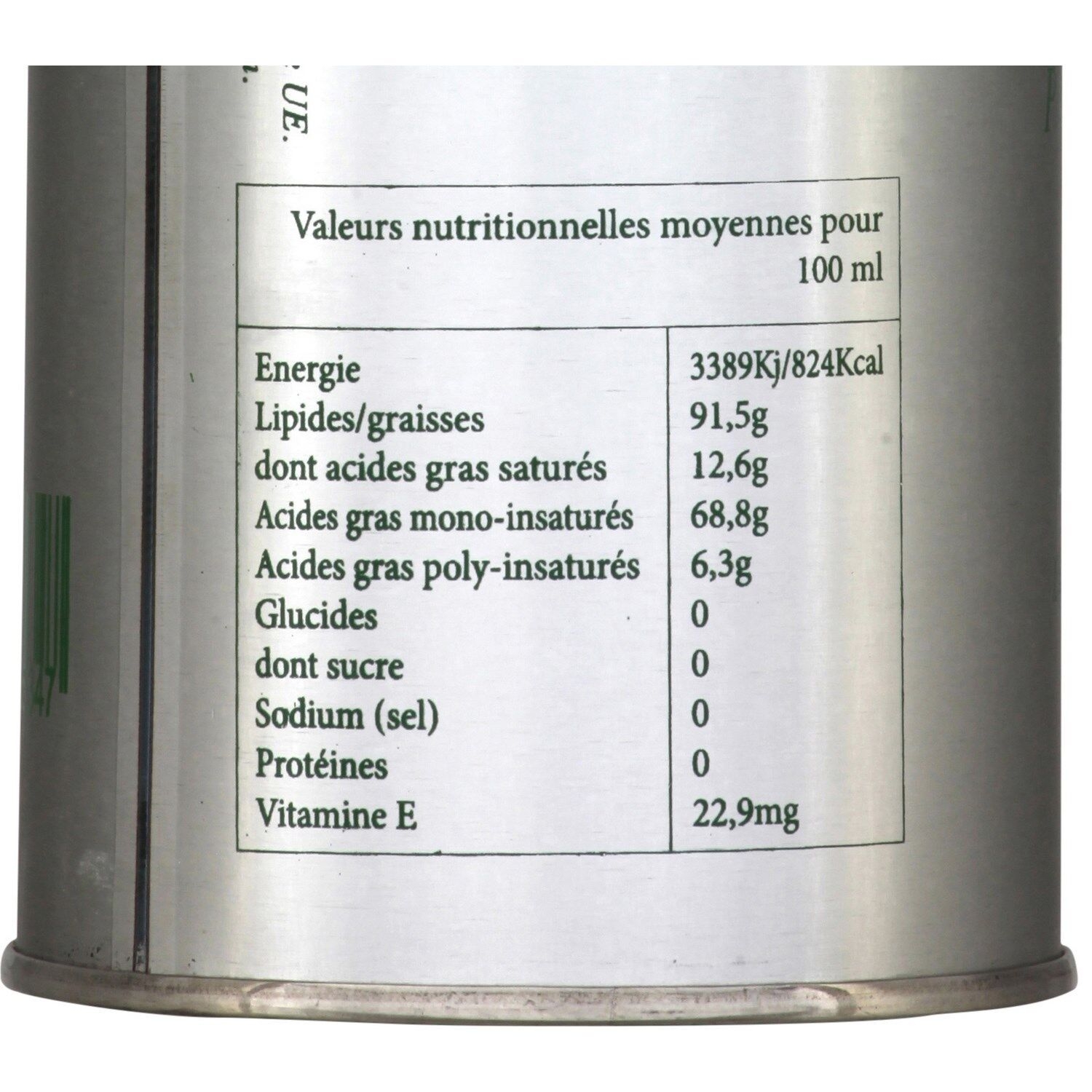 | Valeur énergétique | 824 kcal / 100 mL |