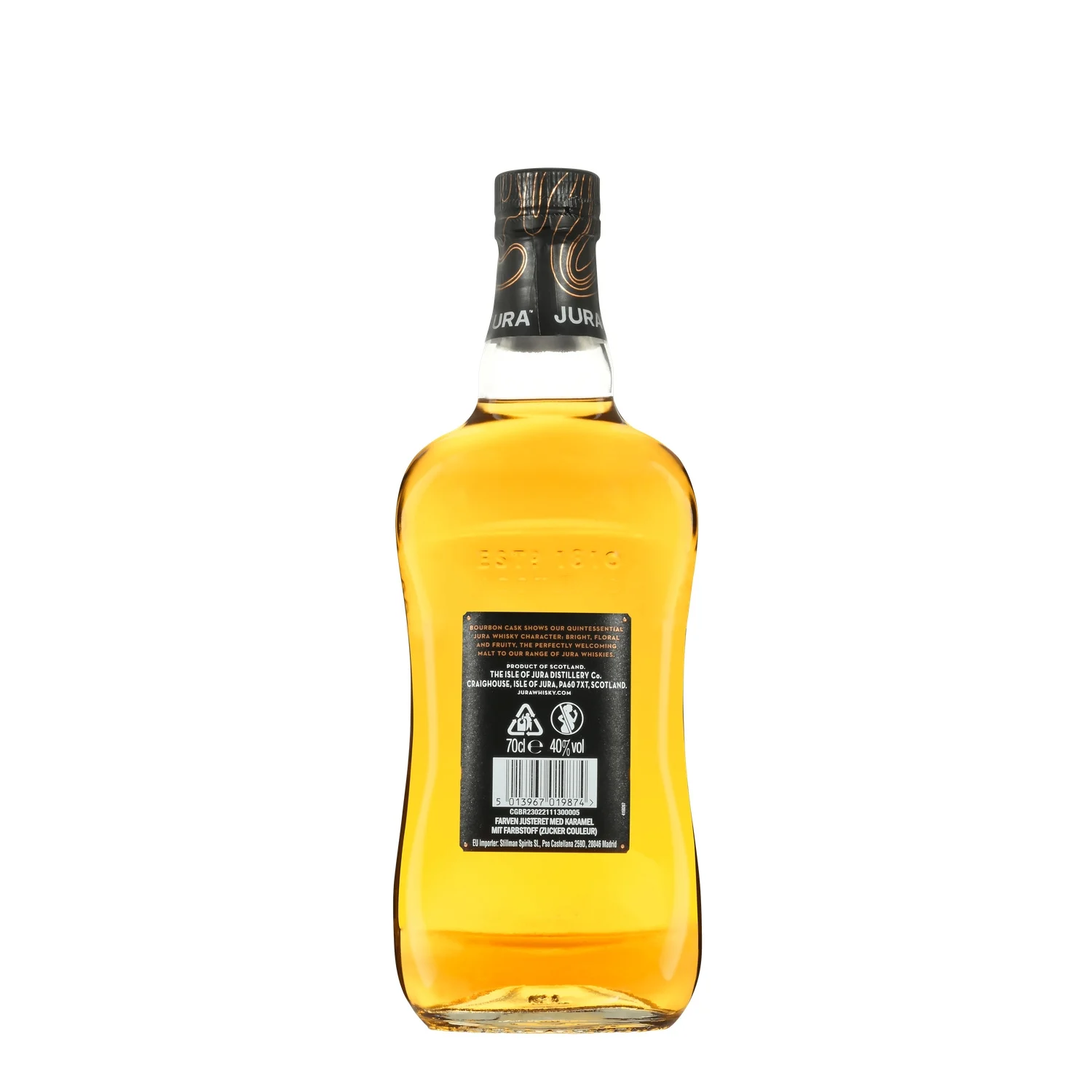 Découvrez le véritable caractère et le style de notre Single Malt avec Jura fûts de bourbon en chêne blanc américain, ce Scotch Single Malt montre la quintessence du caractère du whisky Jura.